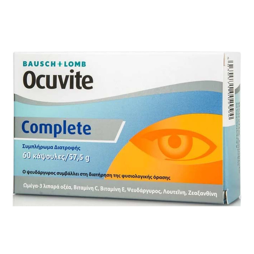 Ocuvite Complete - Υγεία οφθαλμών (60caps)Το συμπλήρωμα διατροφής Ocuvite Complete της Bausch & Lomb, συμβάλλει στη διατήρηση της φυσιολογικής όρασης.