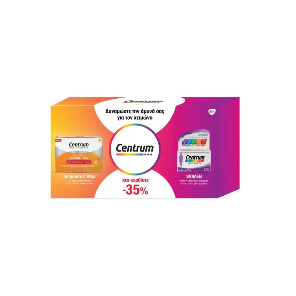 Συνδυάστε το Centrum Women με το Centrum Immunity Vitamin C Max και δυναμώστε την άμυνα σας για τον χειμώνα.