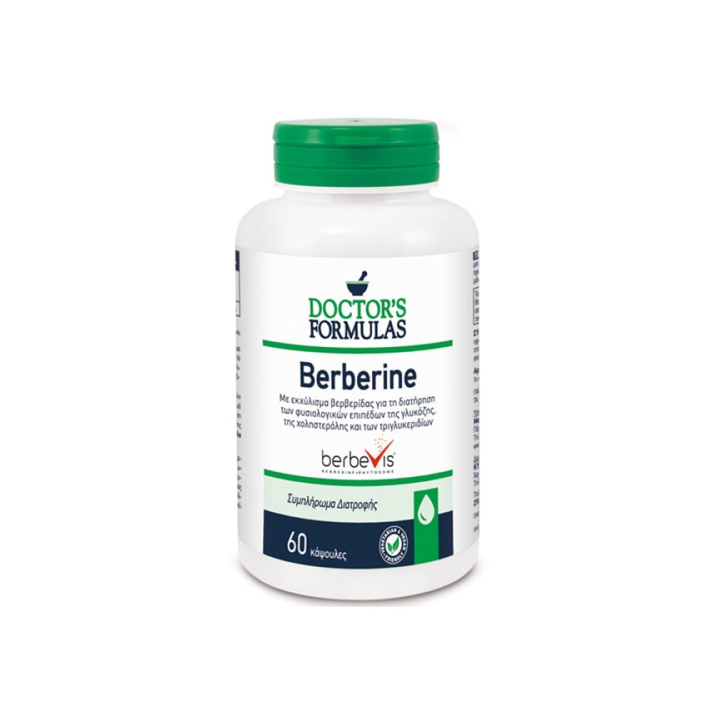 Το DOCTOR’S FORMULAS Berberine είναι ένα συμπλήρωμα διατροφής το οποίο περιέχει χρώμιο και βερβερίνη από εκχύλισμα ρίζας βερβερίδας (Berberis aristata DC). Το εκχύλισμα βερβερίδας βρίσκεται υπό τη μορφή φυτικών λιποσωμάτων, με στόχο τη βελτιστοποίηση της απορρόφησής του. Το χρώμιο συμβάλλει στη διατήρηση των φυσιολογικών επιπέδων γλυκόζης στο αίμα και στο φυσιολογικό μεταβολισμό των μακροθρεπτικών συστατικών.