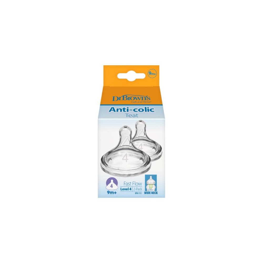 Dr.Brown's Natural Flow Options+ Θηλή Από Διάφανη Σιλικόνη Με Φαρδύ Λαιμό, Επίπεδο 4, WN4201, 9m+ 2Τμχ.