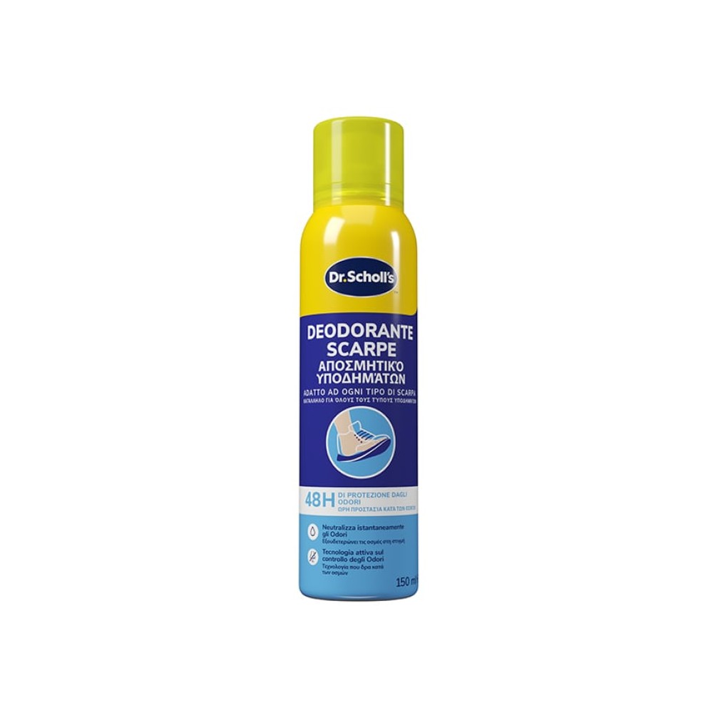 Αποσμητικό σπρέι υποδημάτων από τη Scholl που χαρίζει 48ωρη προστασία από την κακοσμία, κατάλληλο για κάθε τύπο υποδημάτων.