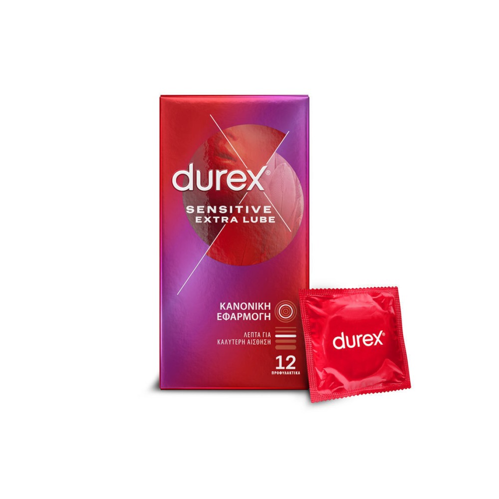 Durex Προφυλακτικά Sensitive Extra Lube Λεπτά 12τμχ.