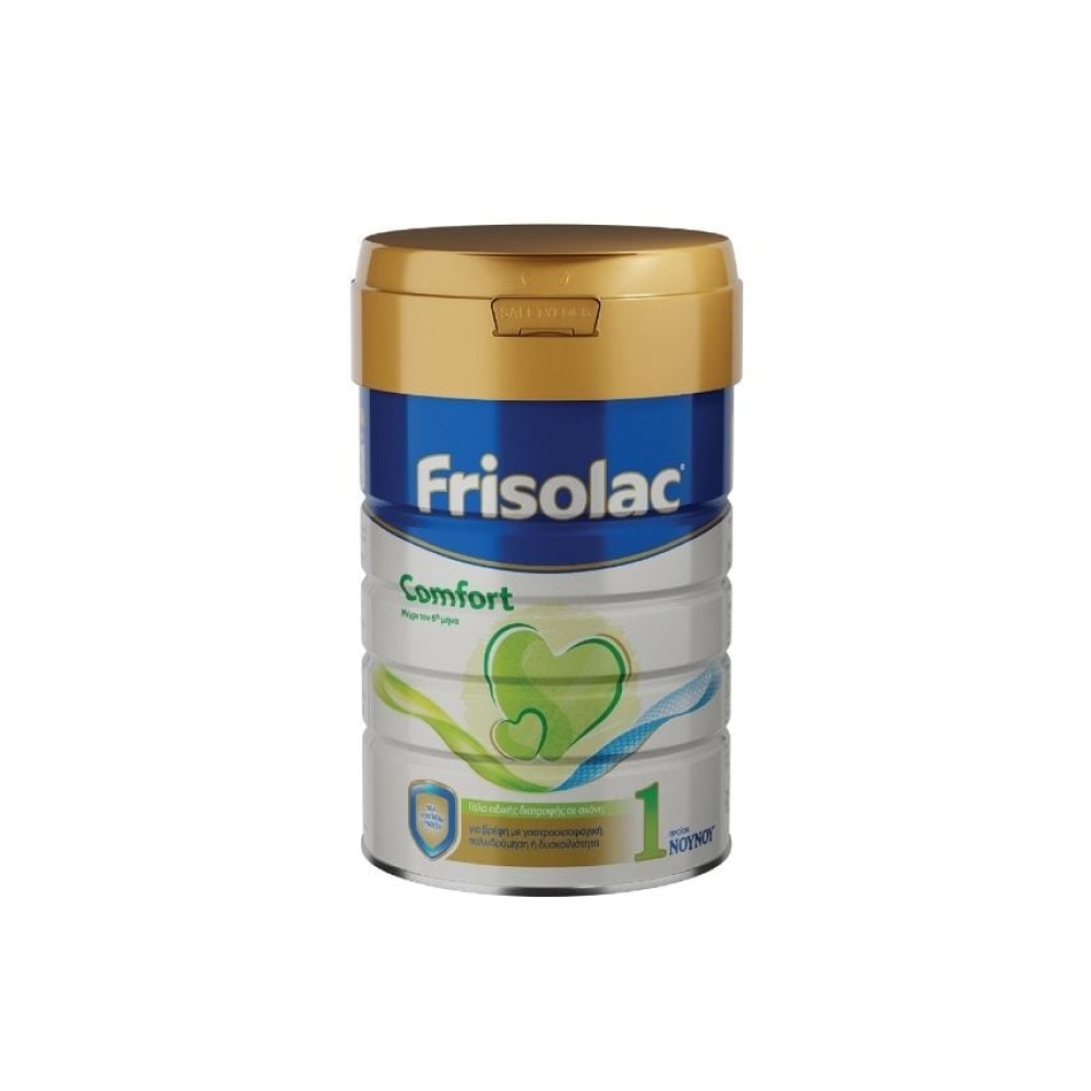 Γάλα για βρέφη με γαστροοισοφαγική παλινδρόμηση ή δυσκοιλιότητα μέχρι τον 6ο μήνα. Με νέα προηγμένη σύνθεση με πρεβιοτικά, πολυακόρεστα λιπαρά οξέα μακράς αλύσου (DHA εικοσιδυεξενικό οξύ, ΑΑ αραχιδονικό οξύ), νουκλεοτίδια και κόμμι χαρουπιού. Επιπλέον το Frisolac Comfort παρέχει όλες τις απαραίτητες βιταμίνες, ιχνοστοιχεία και λιπαρά οξέα για την υγιή ανάπτυξη των βρεφών και καλύπτει τις ειδικές διατροφικές ανάγκες τους. Με Καπάκι ευκολίας Οι συσκευασίες των βρεφικών και νηπιακών γαλάτων Friso περιλαμβάνουν το πρακτικό καπάκι ευκολίας (Easy Lid) παρέχοντας: Ευκολία προετοιμασίας γεύματος Ειδικό καπάκι με δακτύλιο ασφαλείας που κλείνει ερμητικά κλειστά Κάλυμμα αλουμινίου Μεζούρα που ενσωματώνεται στο εσωτερικό μέρος του καπακιού έπειτα από κάθε χρήση Επίπεδο κόφτη για τις ακριβείς δόσεις σκόνης Συσκευασία: 400gr Το μητρικό γάλα είναι ότι καλύτερο για το μωρό σας.