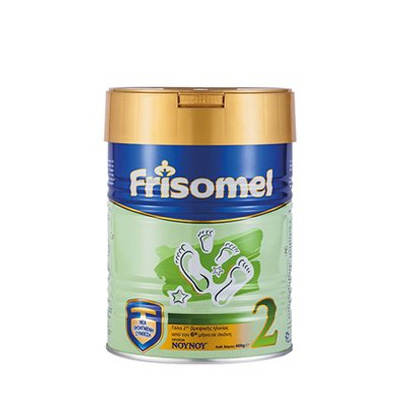 Το γάλα σε σκόνη Frisomel είναι γάλα 2ης βρεφικής ηλικίας και ενδείκνυται για τη ειδική διατροφή των βρεφών από τον 6ο µέχρι τον 12ο µήνα, εφόσον δεν τρέφονται δια θηλασμού και αποτελεί μέρος μόνο μιας διαφοροποιημένης διατροφής. Είναι στιγμιαίας παρασκευής, µε µια νέα προηγμένη σύνθεση µε φυτικές ίνες, πολυακόρεστα λιπαρά οξέα µακράς αλύσου (DHA εικοσιδυεξενικό οξύ, ΑΑ αραχιδονικό οξύ) και νουκλεοτίδια.