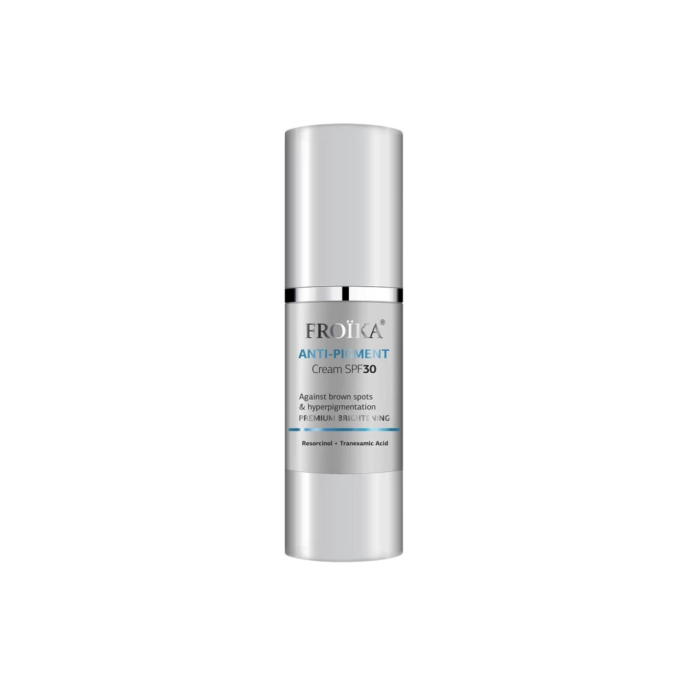 H Froika Anti-Pigment Cream SPF30 είναι μία εξειδικευμένη λευκαντική & φωτοπροστατευτική κρέμα για την καταπολέμηση των μελαγχρώσεων της επιδερμίδας και την αποφυγή επανεμφάνισής τους, με δείκτη προστασίας ενάντια στην UVA/UVB/IR/BLUE LIGHT ακτινοβολία.