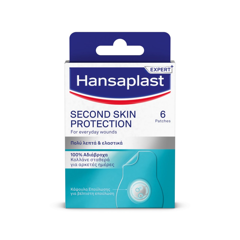 Τα επιθέματα Hansaplast Second Skin Protection, εξαιρετικά λεπτά και ελαστικά αυτοκόλλητα, σχεδιασμένα να παρέχουν προστασία και επούλωση για καθημερινές πληγές.