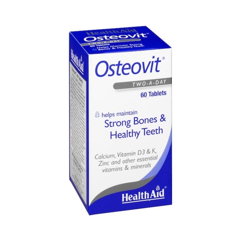 Το Osteovit της HealthAid είναι ειδική σύνθεση με Ασβέστιο, βιταμίνες D3, Κ, Α, C & σύμπλεγμα B μαζί με τα μέταλλα Μαγγάνιο, Σίδηρο, Χαλκό και Ψευδάργυρο, τα οποία δρουν συνεργιστικά για την διατήρηση των υγιών επιπέδων οστικής μάζας και την ενδυνάμωση οστών & δοντιών σε κάθε ηλικία.