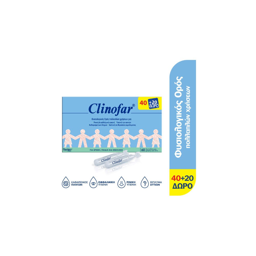 Clinofar Αμπούλες Φυσιολογικού Ορού για Ρινική Αποσυμφόρηση 5ml x 40+20 Δώρο.