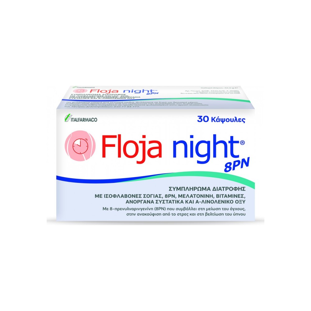 Floja Night 8PN Συμπλήρωμα για την Αντιμετώπιση των Συμπτωμάτων της Εμμηνόπαυσης & Βελτίωση του Ύπνου, 30 κάψουλες