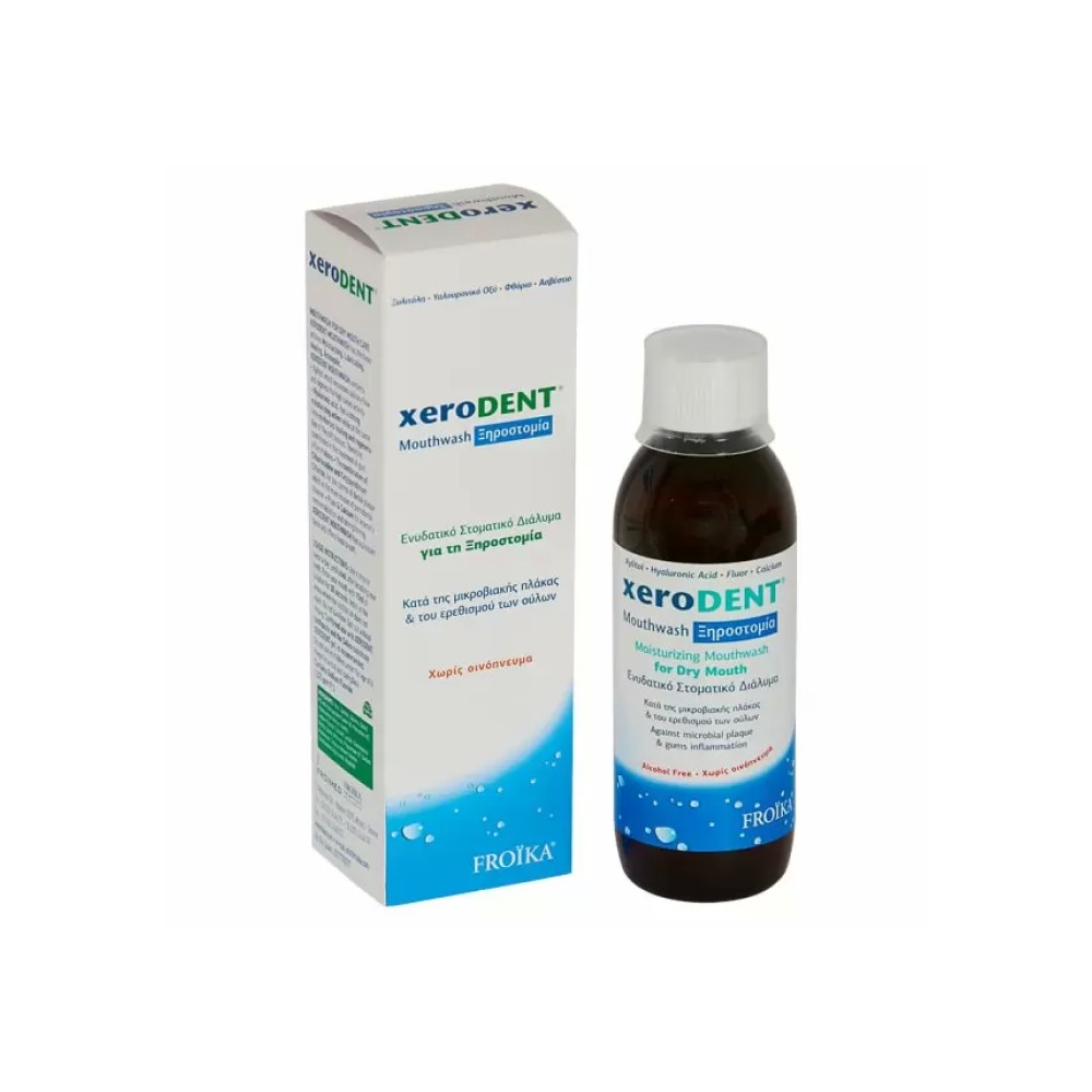 Το XERODENT Στοματικό διάλυμα με την ενυδατική, λιπαντική, επουλωτική και αντισηπτική δράση βοηθά στην αποκατάσταση των συμπτωμάτων του ξηρού στόματος , της μικροβιακής πλάκας και φλεγμονών των ούλων.