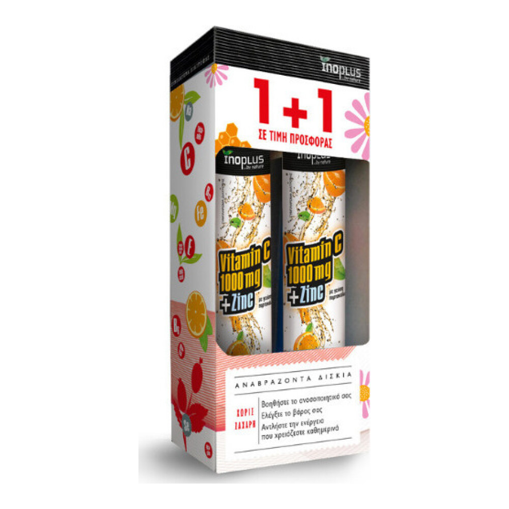 Το InoPlus Vitamin C 1000 mg & Zinc είναι ένα συμπλήρωμα διατροφής σε μορφή αναβράζοντων δισκίων, το οποίο συνδυάζει τα μοναδικά οφέλη της βιταμίνης C με εκείνα του ψευδαργύρου και ενδείκνυται για τη θωράκιση του οργανισμού.