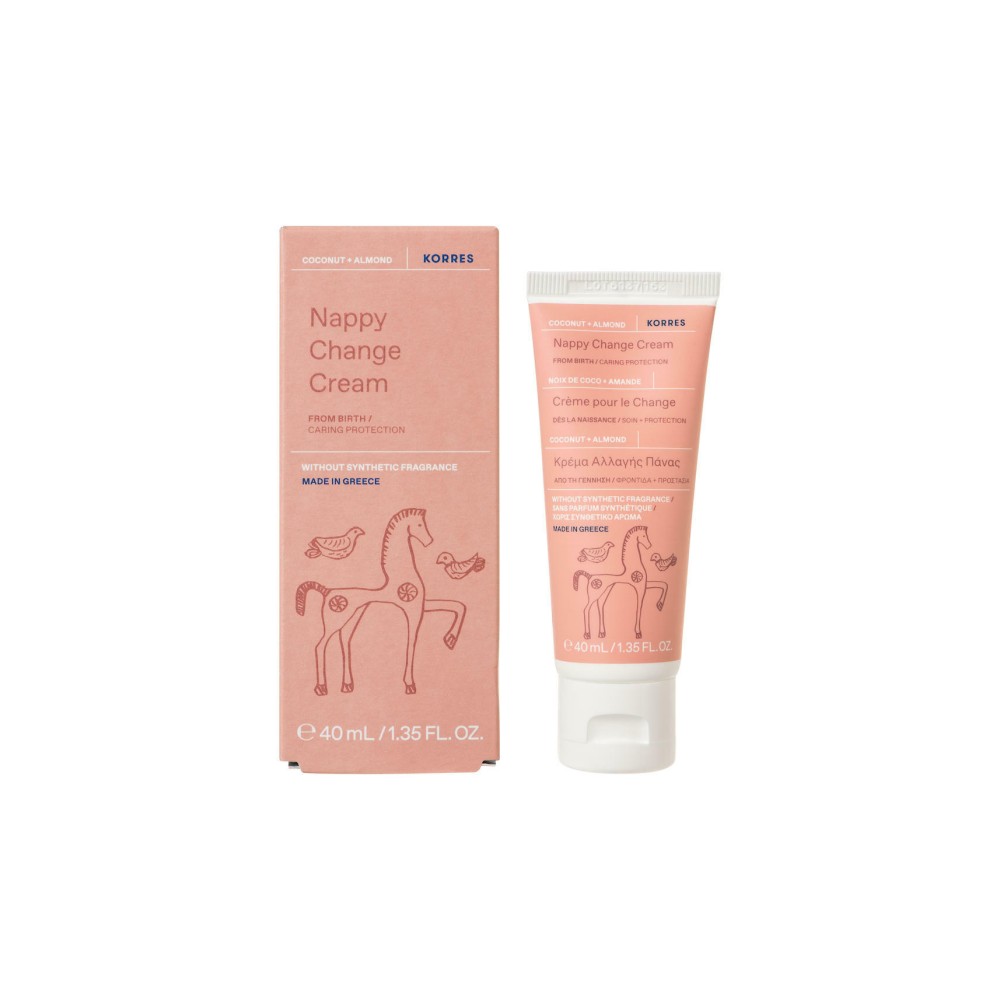 H Βρεφική Κρέμα Αλλαγής Πάνας Korres Coconut and Almond 40ml είναι μία πλούσια κρέμα ειδικά σχεδιασμένη για το ευαίσθητο βρεφικό δέρμα στην περιοχή της πάνας. Είναι κρίσιμης σημασίας, να πραγματοποιηθεί επιμελής καθαρισμός και χρήση ειδικής κρέμας, μετά από κάθε αλλαγή πάνας για την αποφυγή ερεθισμών και επιμολύνσεων. Η σωστή επιλογή κρέμας καθίσταται απαραίτητη για αυτή τη διαδικασία, καθώς η αλλαγή της πάνας γίνεται συνήθως 6 με 8 φορές την ημέρα, πράγμα που αυξάνει τις πιθανότητες να δημιουργηθεί παράτριμμα, ο συχνότερος δερματικός ερεθισμός και εντοπίζεται στο 60% των βρεφών. Αρχικά εμφανίζεται ως έντονο ερύθημα (κοκκινίλα) στη μηρογεννητική περιοχή και αν δεν αντιμετωπιστεί σε 3 με 5 ημέρες είναι πιθανό να εμφανιστεί μυκητίαση και να χρειαστεί φαρμακευτική αγωγή για την αντιμετώπιση του!