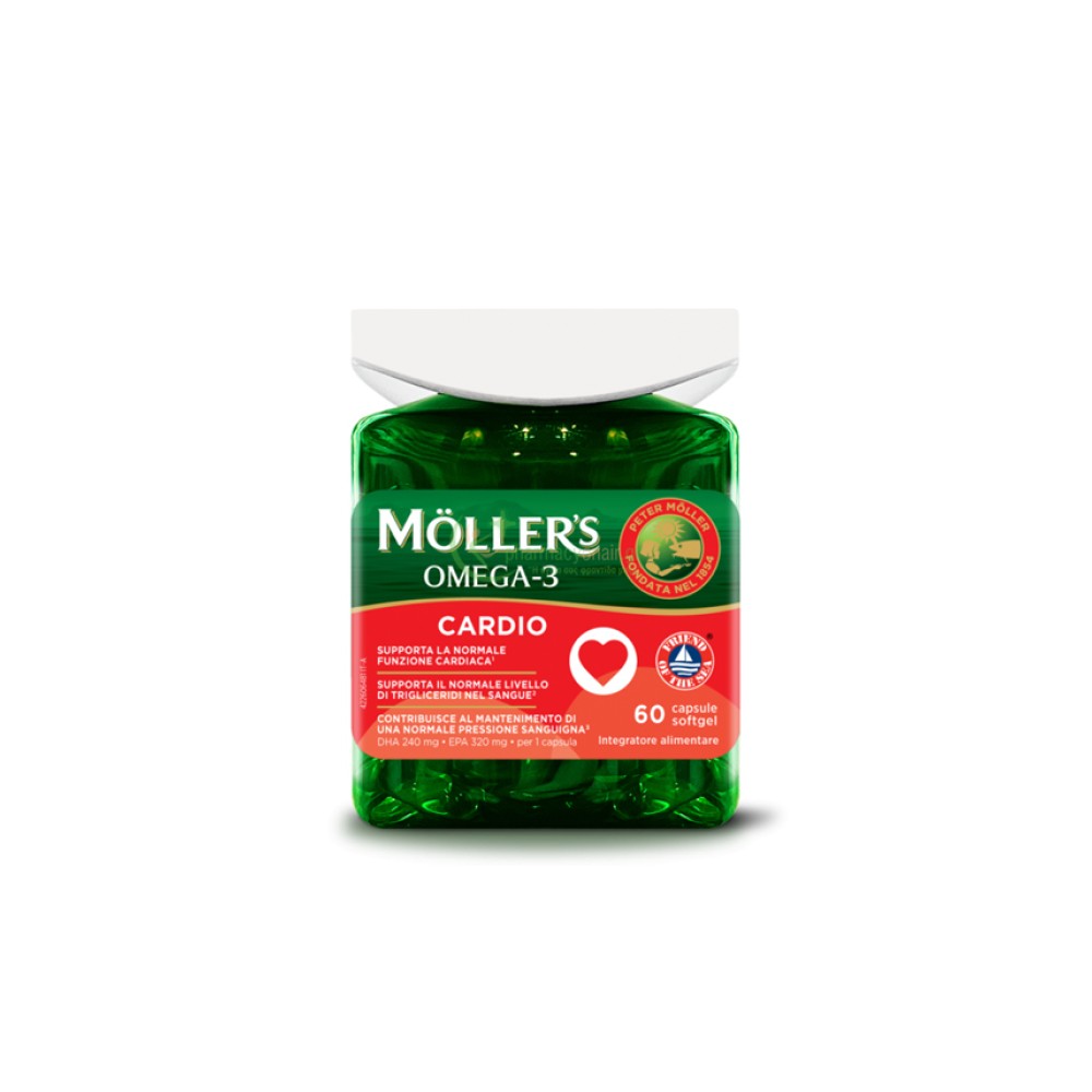 Το Möller’s Omega 3 Cardio είναι μια συμπυκνωμένη πηγή Ω3 λιπαρών οξέων. Τα DHA και EPA ευρίσκονται σε μουρουνέλαια και ιχθυέλαια και είναι τα σημαντικότερα λιπαρά οξέα της οικογένειας των Ω3. Αποτελούν δομικά συστατικά των ανθρώπινων κυττάρων και σημαντικά στοιχεία για την καλή λειτουργία του εγκεφάλου, των ματιών και της καρδιάς, καθώς και για την υγεία των οστών. Χάρη στη βελτιωμένη του φόρμουλα από μείγμα Ωμέγα-3 απαραίτητων λιπαρών οξέων και με συνδυασμό εικοσιδυαεξανοϊκού οξέος (DHS), εικοσαπενταενοϊκού οξέος (EPS), προάγει την υγεία της καρδιάς και συμβάλλει στη βέλτιστη καρδιαγγειακή υποστήριξη.