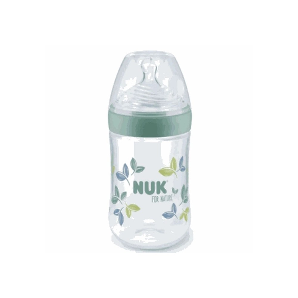 NUK for Nature Μπιμπερό με Δείκτη Ελέγχου Θερμοκρασίας, με θηλή από βιώσιμη σιλικόνη, σχεδιασμένη κατά τα πρότυπα του μητρικού στήθους, χωρίς BPA.