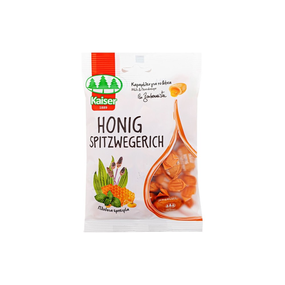 Οι καραμέλες Honig Spitzwegerich της Kaiser περιέχουν πεντάνευρο, βιταμίνη C και γέμιση από μέλι. Με εκχυλίσματα βοτάνων και έλαια μέντας και δυόσμου είναι ιδανικές για τον βήχα και τον λαιμό.
