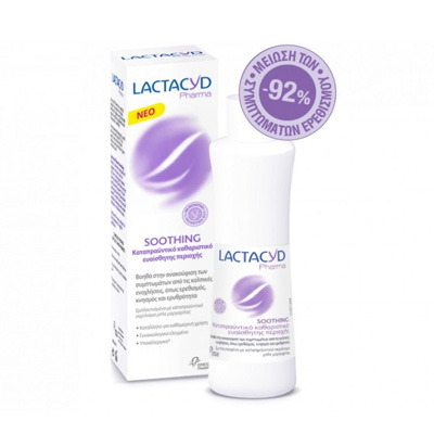 Το Lactacyd Pharma Soothing βοηθά στην ανακούφιση από τα συμπτώματα της κολπικής δυσφορίας, όπως ο ερεθισμός, ο κνησμός, το τσούξιμο και η ερυθρότητα.