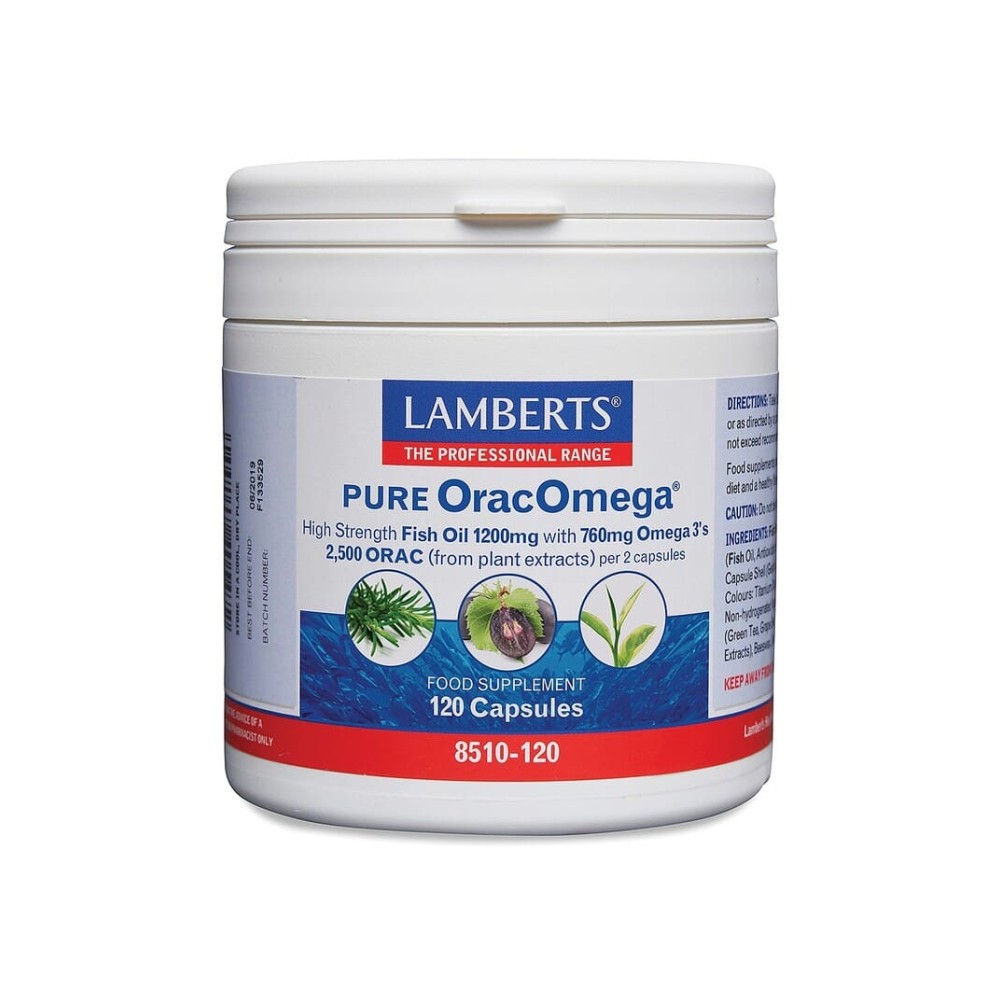 Διατροφική Αξία & ΣυστατικάΠεριεκτικότητα ανά μερίδα (2 κάψουλες):Συμπυκνωμένο Ιχθυέλαιο σώματος ψαριού 1200mgΤο οποίο αποδίδει Ολικά Ω3 760mgΕκ των οποίωνEPA (Eicosapentaenoic Acid) 390mgDHA (Docosahexaenoic Acid) 260mgΜείγμα ORAC (από πράσινο τσάι, Σπόρους Κόκκινου Σταφυλιού,Δενδρολίβανο και Εκχύλισμα Ρίγανης) 200mgΆλλα συστατικά: Ιχθυέλαιο (Συμπυκνωμένο Ιχθυέλαιο σώματος ψαριού 5πλής μοριακής απόσταξης, Αντιοξειδωτικό: μίγμα τοκοφερόλων, Περίβλημα κάψουλας (Γλυκερόλη, Ζελατίνη, Έλαιο πορτοκαλιού).