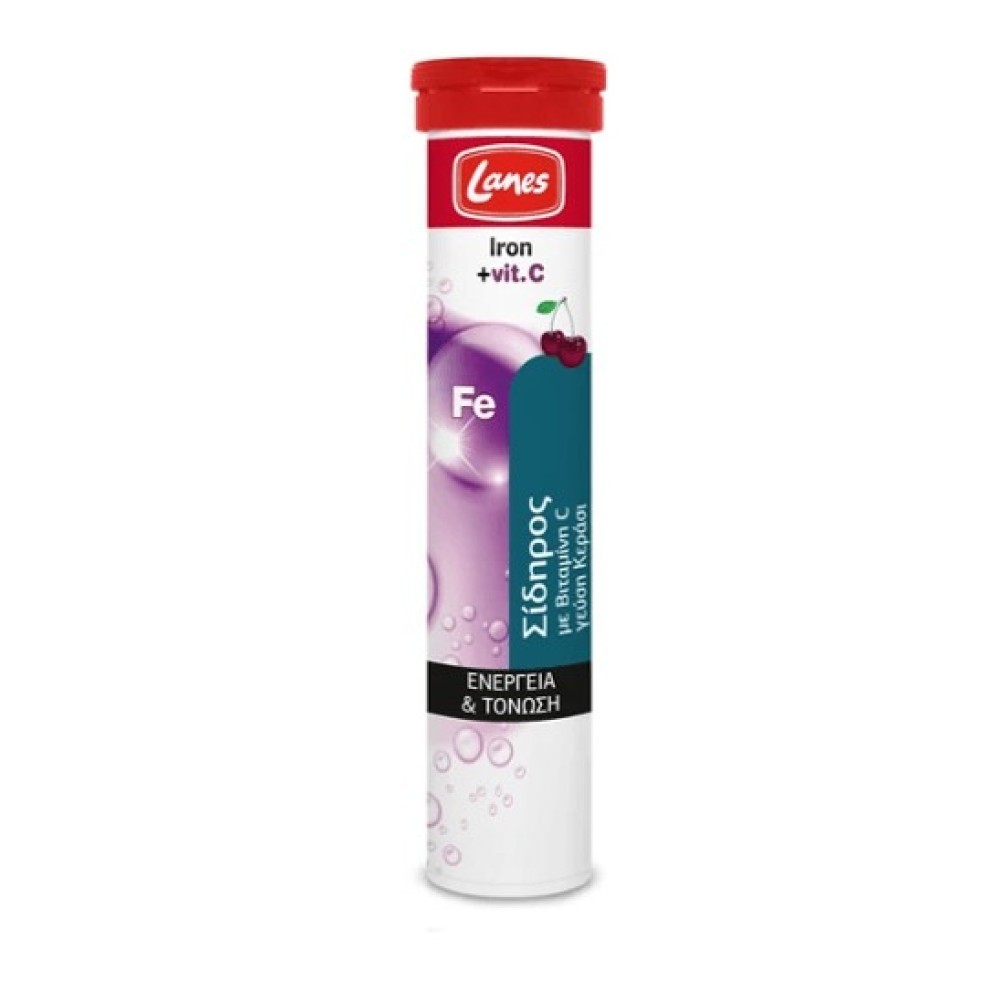 To συμπλήρωμα διατροφής σίδηρος με βιταμίνη C από τα Lanes συνδυάζει το σίδηρο, ζωτικό μέταλλο για την καλή λειτουργία του σώματος, με την επίσης σημαντική βιταμίνη C που βοηθάει στην απορρόφησή του, στη δοσολογία που απαιτείται για την κάλυψη των ημερήσιων αναγκών του οργανισμού σε ποσοστό 100%.Η πρωτεύουσα δράση του σιδήρου έγκειται στο φυσιολογικό σχηματισμό των ερυθρών αιμοσφαιρίων και της αιμοσφαιρίνης που μεταφέρουν το ζωτικό οξυγόνο στο σώμα. Ο σίδηρος ενισχύει τη φυσιολογική γνωσιακή λειτουργία, καθώς εμπλέκεται στη σύνθεση νευροδιαβιβαστών στον εγκέφαλο. Συγχρόνως με τη βιταμίνη C, που αυξάνει την απορρόφησή του, έχουν σημαντικό ρόλο στη φυσιολογική λειτουργία του μεταβολισμού που αποσκοπεί στην παραγωγή ενέργειας, με αποτέλεσμα τη μείωση της κούρασης και της κόπωσης του οργανισμού. Παράλληλα, συμβάλλουν στη φυσιολογική λειτουργία του ανοσοποιητικού ενισχύοντας την άμυνα του οργανισμού. Επιπλέον η βιταμίνη C συμβάλλει στο σχηματισμό του κολλαγόνου για τη φυσιολογική λειτουργία του δέρματος, των αιμοφόρων αγγείων, των οστών, των χόνδρων, των δοντιών και των ούλων.