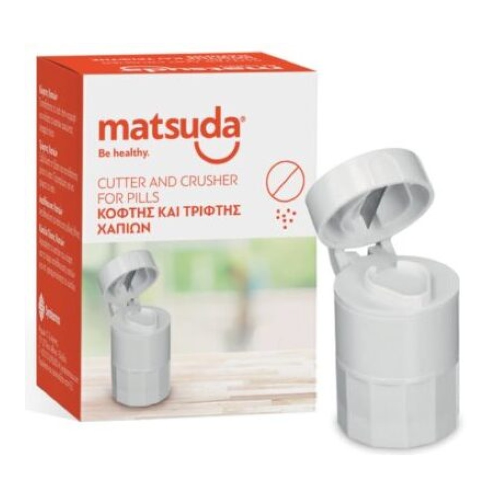 Κόφτης και τρίφτης χαπιών με αποθηκευτικό χώρο και κύπελλο πόσης.