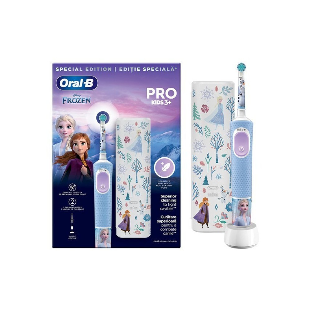 Η παιδική ηλεκτρική οδοντόβουρτσα Oral-B Vitality PRO συνιστάται από οδοντιάτρους για ηλικίες 3+ ετών και προσφέρει απαλό και αποτελεσματικό καθαρισμό. Με 2 προγράμματα βουρτσίσματος, ένα για καθημερινό καθαρισμό και ένα για βούρτσισμα των ευαίσθητων παιδικών δοντιών για έναν πολύ απαλό καθαρισμό. Απομακρύνει περισσότερη πλάκα από μια απλή χειροκίνητη οδοντόβουρτσα. Περιλαμβάνει 4 θεματικά αυτοκόλλητα για διακόσμηση της λαβής.