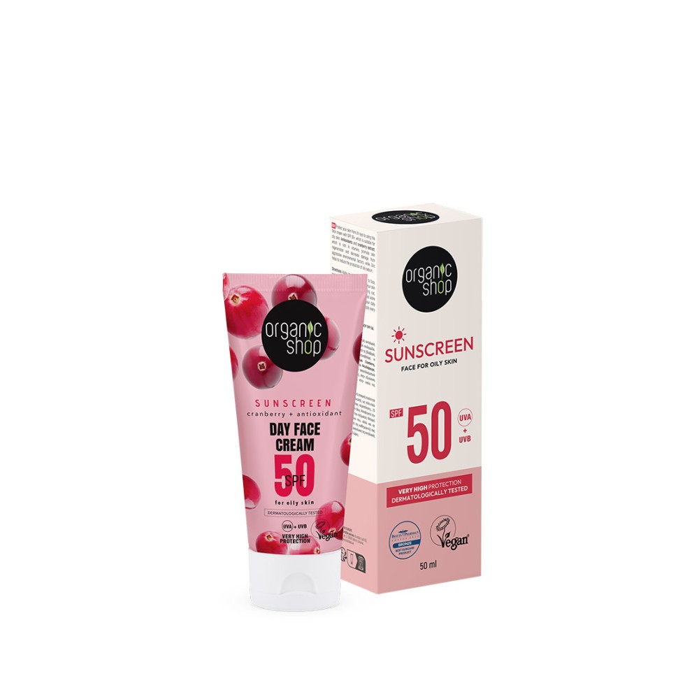 Organic Shop by Natura Siberica Sunscreen Αντηλιακό Προσώπου με Κράνμπερι SPF50, 50ml
