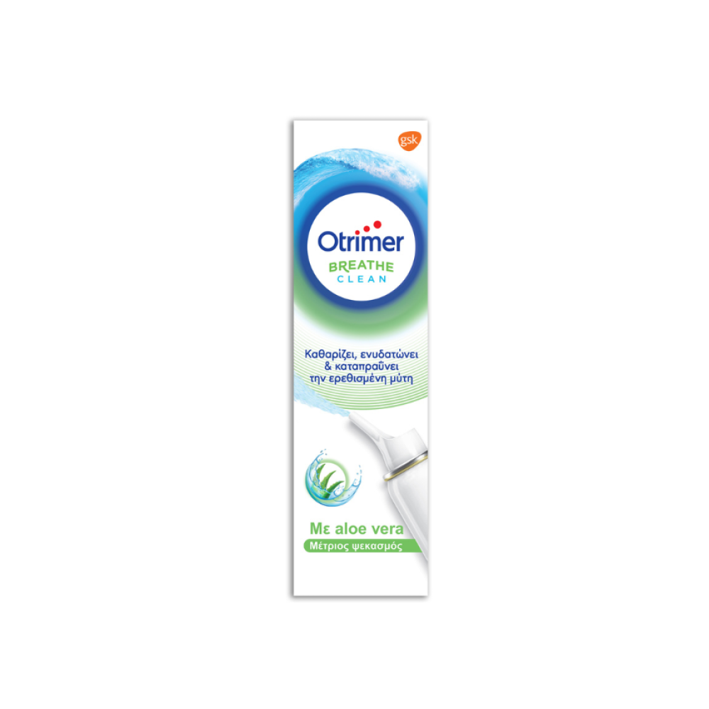 Το Otrimer Breathe Clean ALOE VERA (Μέτριος Ψεκασμός) είναι κατάλληλο για ενήλικες και παιδιά άνω των 6 ετών. Περιέχει φυσική σκόνη Aloe Vera, γνωστή για τις καταπραϋντικές και ενυδατικές της ιδιότητες. Το ρινικό του ακροφύσιο προσαρμόζεται στο σχήμα της μύτης μεγαλύτερων παιδιών (άνω των 6 ετών) και ενηλίκων. Η πίεση του ψεκασμού επιτρέπει μία απαλή και προσεκτική έκπλυση της βουλωμένης μύτης και της μύτης με καταρροή. Το σπρέι αυτό μπορεί επίσης να χρησιμοποιηθεί για τη διατήρηση της υγρασίας των ρινικών αεραγωγών.