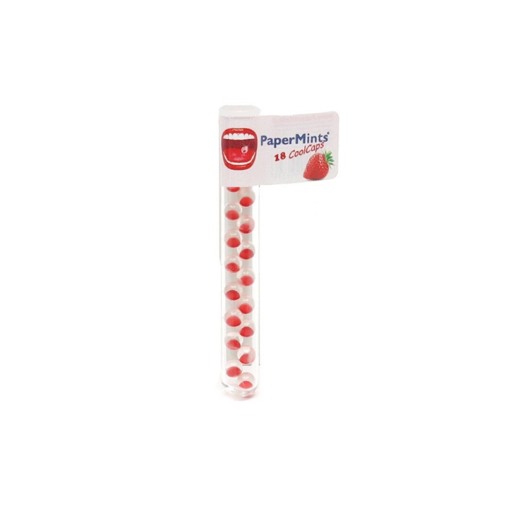Μικρά υπογλώσσια καψάκια χωρίς ζάχαρη με γεύση φράουλα και γλυκαντικά για δροσερή αναπνοή που διαρκεί ώρες.