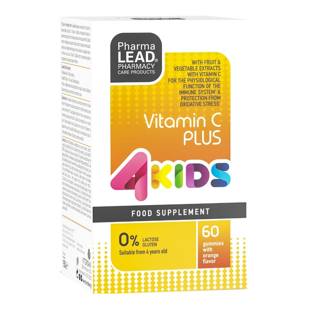 Τα ζελεδάκια Pharmalead Vitamin C plus 4Kids περιέχουν εκχυλίσματα από 23 φρούτα και λαχανικά καθώς και βιταμίνη C. H Βιταμίνη C συμβάλλει στη φυσιολογική λειτουργία του ανοσοποιητικού συστήματος κατά τη διάρκεια και μετά από έντονη σωματική άσκηση. Συμβάλλει επίσης στην προστασία των κυττάρων από το οξειδωτικό στρες, στο φυσιολογικό σχηματισμό του κολλαγόνου για τη φυσιολογική λειτουργία των οστών, των χόνδρων, των αιμοφόρων αγγείων, των δοντιών και των ούλων. Η βιταμίνη C συμβάλλει επίσης στη φυσιολογική ψυχολογική λειτουργία και στη λειτουργία του νευρικού συστήματος.
