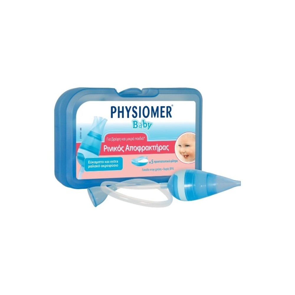 Τα μωρά ηλικίας κάτω των 2 ετών δεν έχουν τη δυνατότητα να φυσούν τη μύτη τους. Ευτυχώς, υπάρχει ο PHYSIOMER®Ρινικός Αποφρακτήρας, ο οποίος είναι ειδικά σχεδιασμένος ώστε να ανακουφίζει με ήπιο, αποτελεσματικό και γρήγορο τρόπο τις βουλωμένες μύτες. Ο ρινικός αποφρακτήρας έχει ένα πολύ μαλακό ακροφύσιο το οποίο δεν ερεθίζει τις ευαίσθητες μυτούλες των βρεφών. Απομακρύνει από τη μύτη την πλεονάζουσα βλέννη, βοηθώντας έτσι το βρέφος να αναπνέει καλύτερα. Ο PHYSIOMER® Ρινικός Αποφρακτήρας διατίθεται με ειδικά φίλτρα κατάλληλα για τη συλλογή της βλέννης.