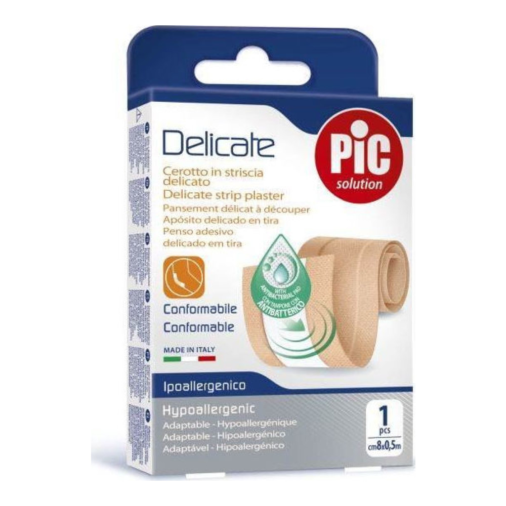 PIC Delicate απαλό τσιρότο υψηλής απορροφητικότητας σε λωρίδες. Πολύ απαλό strip plaster, ιδανικό για το ευαίσθητο δέρμα Το Delicate Ultra Gentle Plaster της Pic Solution είναι ένα ιδιαίτερα απαλό τσιρότο υψηλής απορροφητικότητας σε λωρίδες. Αποτελείται από ένα ειδικό μη υφαντό ύφασμα με ικανότητα διαπνοής και εξαιρετική προσαρμογή στην επιδερμίδα. Επιπλέον, είναι αντιβακτηριδιακό χάρη στο επίθεμα χιτίνης.