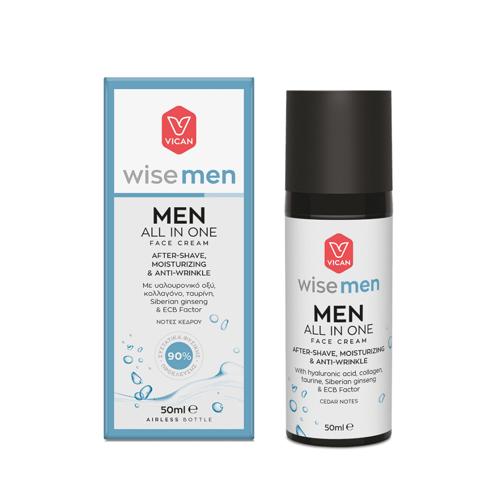 Vican Wise Men All in One AFTER SHAVE & ALL-DAY FACE CREAM με υαλουρονικό, κολλαγόνο, ταυρίνη, Siberian Ginseng & ECB Factor, 50ml